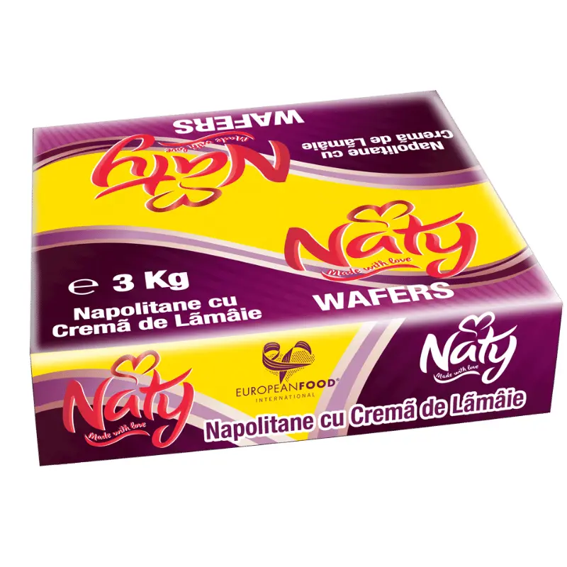 NATY Napolitane cu crema de lamaie 3kg este alegerea ideală atunci când ai nevoie de un stoc mare de napolitane cu gust proaspăt și aromat, potrivite pentru familie, petreceri, evenimente, cafea-pauze, cofetării sau revânzare. Cantitatea generoasă oferă flexibilitate, economie și confort — fără a compromite gustul și calitatea.