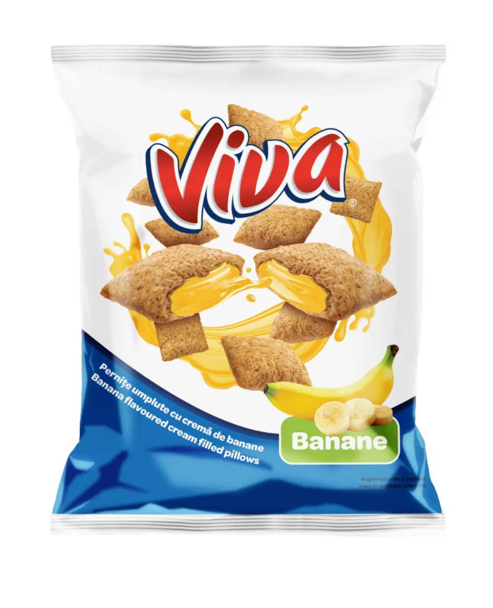 Descriere VIVA Pernițe umplute cu cremă de banane 200g