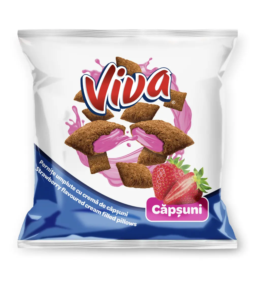 VIVA Pernițe cu cremă de căpșuni sunt o alegere potrivită pentru cei care apreciază gustările dulci cu aromă fructată.