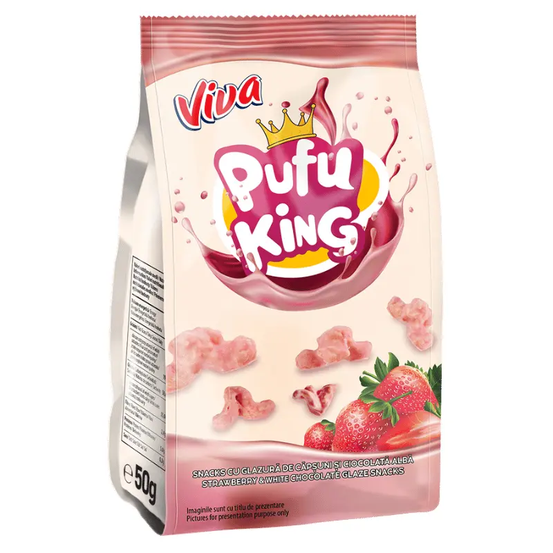 • Snack-ul VIVA Pufu King cu glazură de căpșuni și ciocolată este o alegere excelentă pentru momente de răsfăț, pauze, gustări rapide sau deserturi spontane.